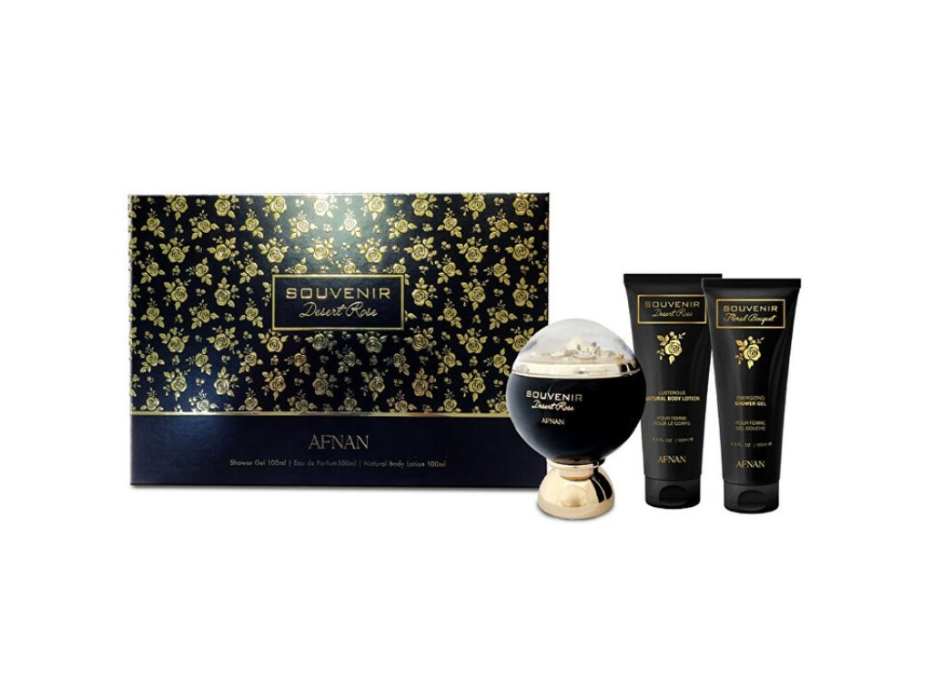Afnan Souvenir Desert Rose dárková sada pro ženy parfémovaná voda 100 ml + sprchový gel 100 ml + tělové mléko 100 ml