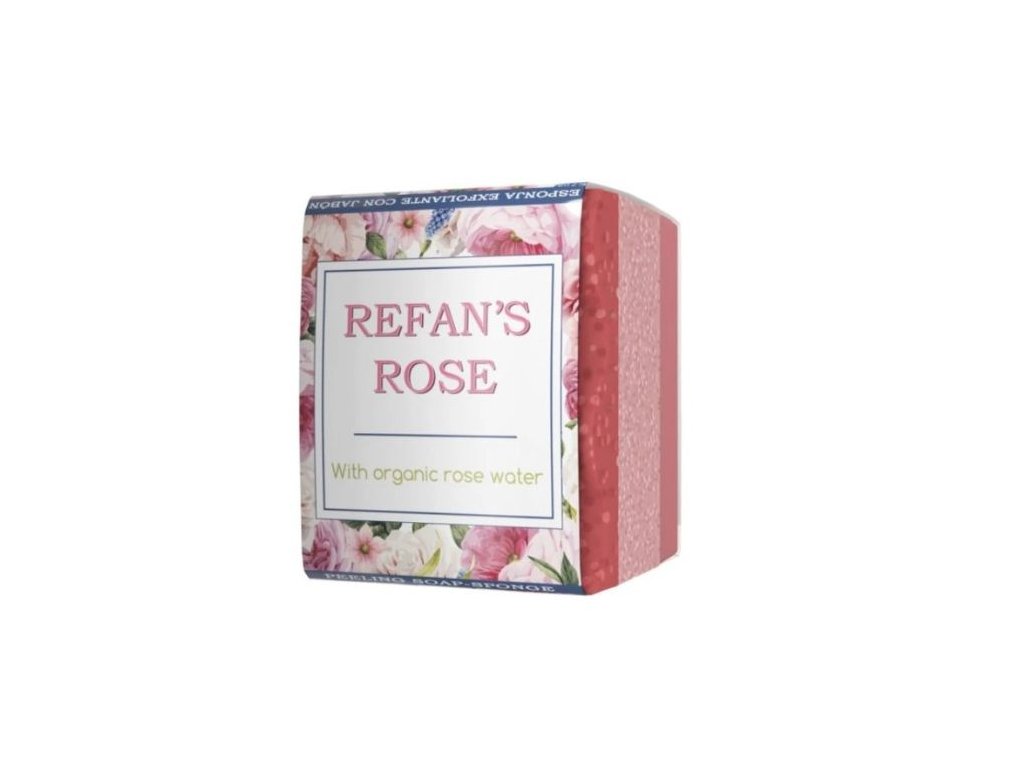- Houba s peelingovým mýdlem Refan's Rose 75 g. - Kombinace houby a svěžího mýdla pro všechny typy pleti poskytuje pohodlí v koupelně. Růžové voda hydratuje, vyživuje a zvláčňuje pokožku. Houba je vhodná pro každodenní použití.
