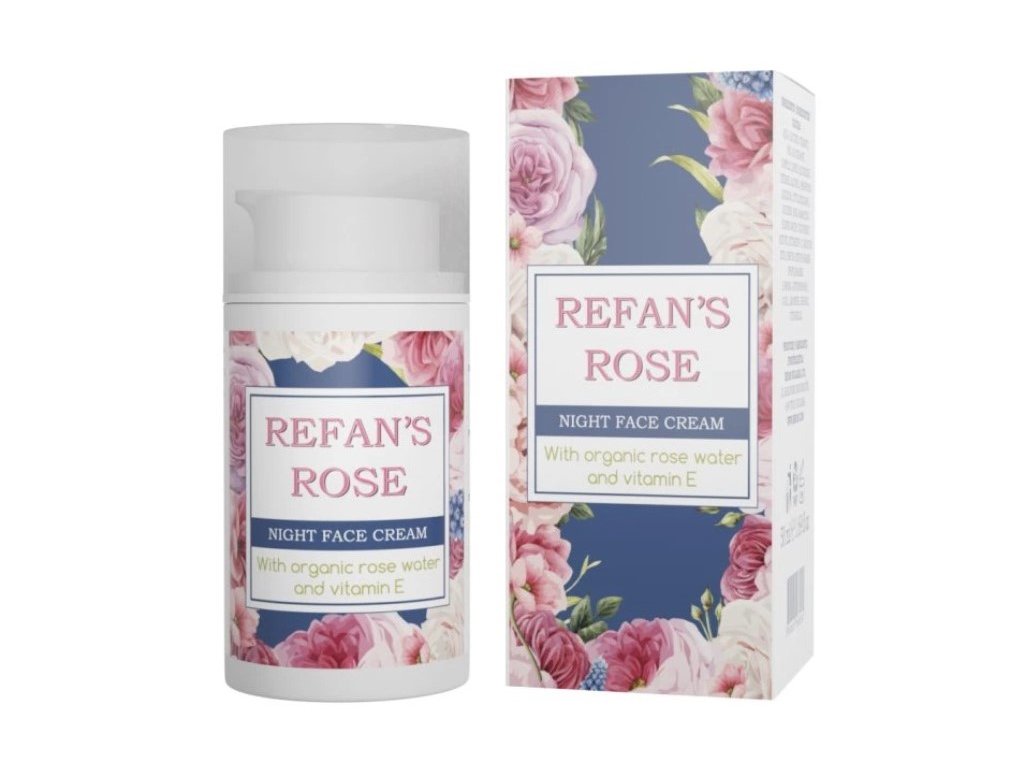 - Noční pleťový krém s organickou růžovou vodou Refan's Rose 50 ml - Péče o obličej s jemným složením pro intenzivně hydratovanou pleť v noci. Kombinace organické růžové vody z Rosa Damascena a vitamínu E hydratuje a zklidňuje pokožku obličeje. Dodává hedvábný pocit a měkkost.
