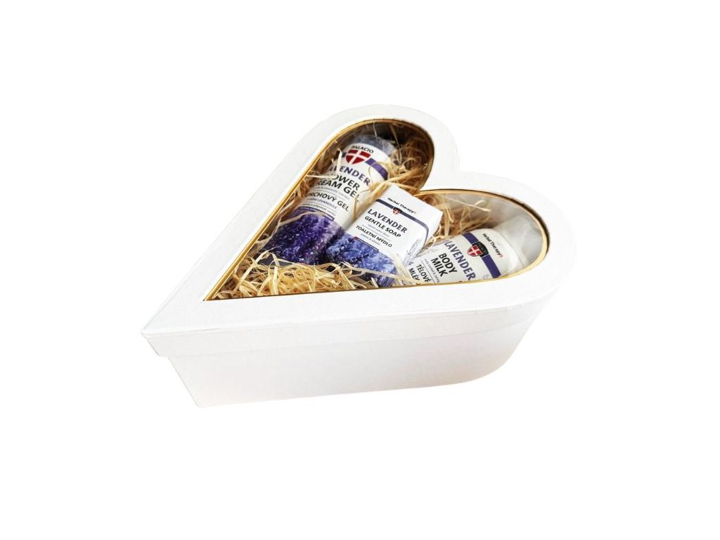 Hledáte elegantní dárek, který potěší a zároveň zahřeje u srdce? Tato luxusní dárková sada je zabalená do krásné bílé papírové krabice ve tvaru srdce, ozdobené zlatým lemováním a průhledem, díky kterému vynikne její obsah.