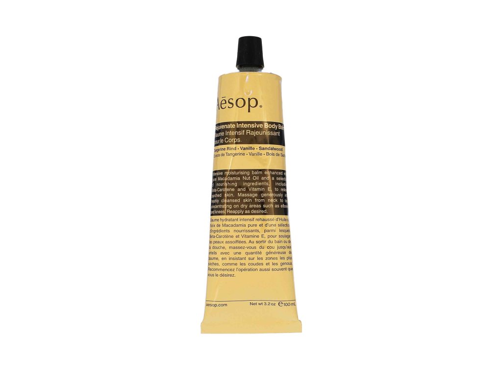 Výjimečně hydratační tělový balzám Aesop Rejuvenate Intensive Body Balm vyživí a zklidní i tu nejsušší pokožku. Tento nemastný balzám obsahuje čisté oleje z makadamových ořechů a sladkých mandlí, které vyživují i ??ta nejsušší místa - je ideální pro použití na loktech, kolenech a chodidlech. Receptura je ovoněná aromatickou, hřejivou vůní vanilky, mandarinky a santalového dřeva pro jedinečný smyslový zážitek.Doplňkové parametry