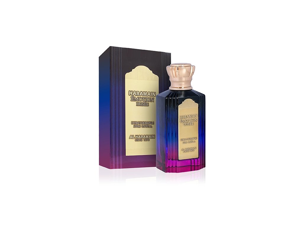 Parfémový extrakt Haramain Émotion Irisée je vůně, která promlouvá k duši, s uklidňujícím objetím levandule, svěží sladkostí hrušky a svěžestí bergamotu. V jejím srdci vytváří směs šlehačky, krémového kokosu, pralinky a vanilkové orchideje dekadentní a uklidňující auru. Vůně se usazuje v jemných pižmových a teplých dřevitých tónech a zanechává za sebou stopu klidu.Doplňkové parametry