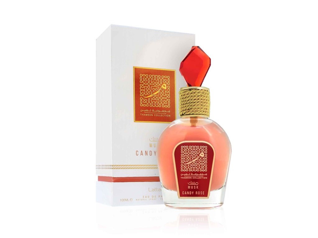 Pafémovaná voda Lattafa Tameen Collection Musk Candy Rose je květinovo pižmová vůně. Kompozice se otevírá nádechem citrusů a sladkostí růže, v srdci se prolíná bílé pižmo s květinovými tóny a v základu ambra a pižmo. Společně tyto tóny vytvářejí hravou a lahodnou vůni, jako je marmeláda z okvětních lístků růže ale s náznaky čistého, bílého pižma a svěžesti.
